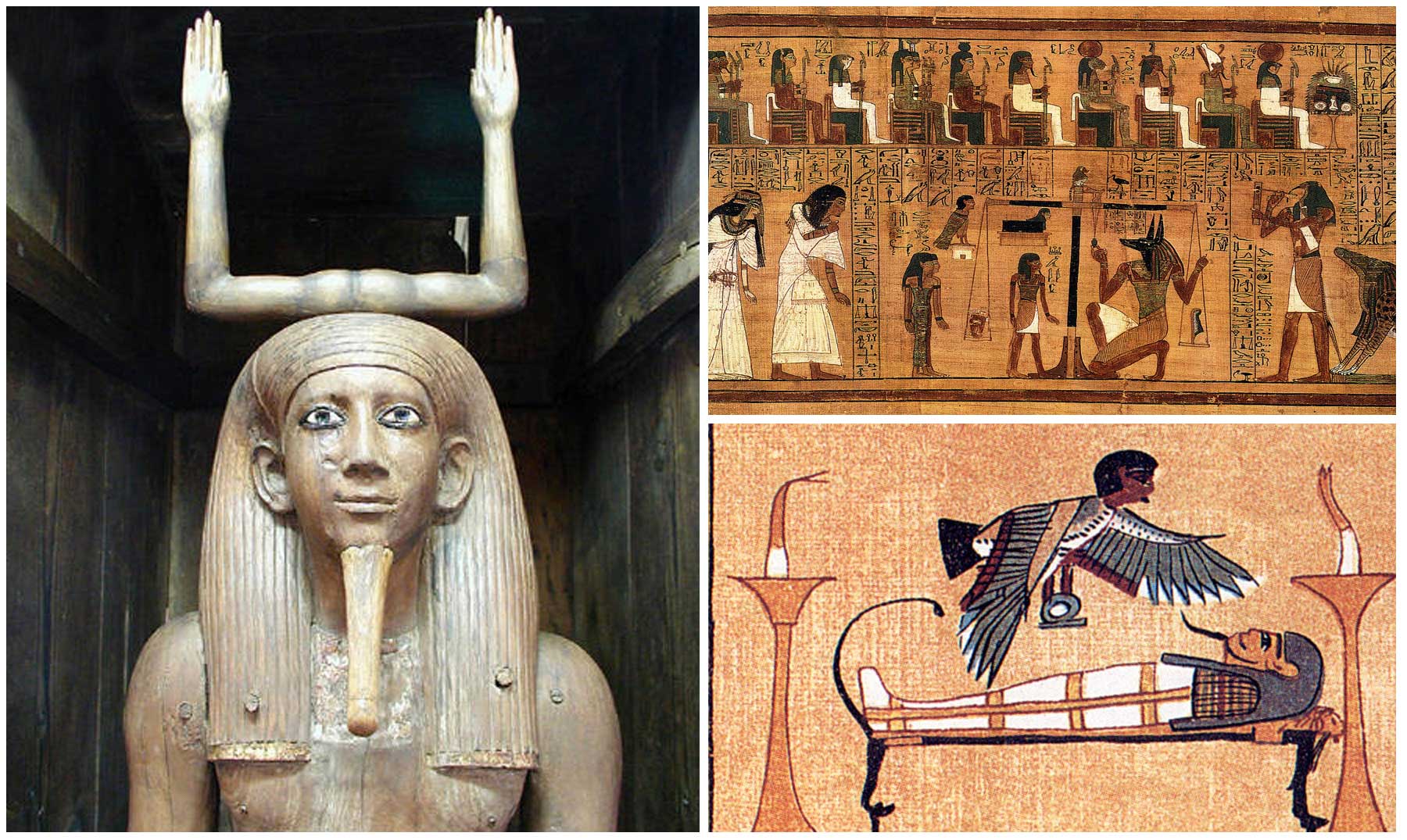 Para los antiguos Egipcios el Ba era la representación simbólica del alma. Toma la forma de una pequeña ave con la cabeza de un ser humano. El Ba podía realizar vuelos entre su dueño y los Dioses en tanto el cuerpo estuviera intacto. El Ba esta hermanado con el Ka que representaba la fuerza vital, la chispa de vida que animaba el cuerpo y cuya partida resultaba en la muerte. El Ka se sustentaba con ofrendas de comida y bebida, aunque era el "ka" o el espíritu de la comida y bebida lo que era consumido. En la vida después de la muerte, el Ba y el Ka se reunirían para formar una sola entidad.